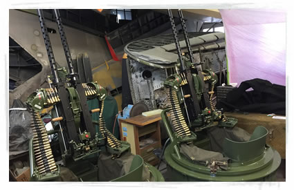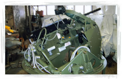 PT Boat Replica Dual BMG .50 Cal Gun Turrets to be installed on the PT-728 MTB at the Liberty Aviation Museum see it at www.libertyaviationmuseum.org. North American Restorations built two identical turrets for the museum that feature the Automatic Weapon Simulator AWS-50 Dual BMG .50 Cal system. This system uses a programmable microprocessor to control propane, oxygen and a spark to operate and sound like a real gun firing. It is extremely loud and very realistic for a replica that does not shoot any projectile. |